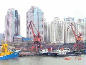 建設ラッシュの上海。 多くの建設材料が運び込まれる。 |