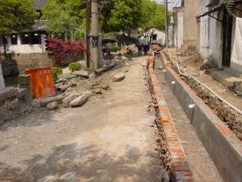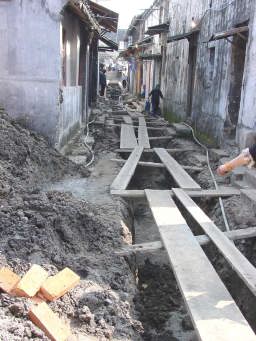現地の人も道があちこち掘り返され、工事の進み具合を見守っていた。