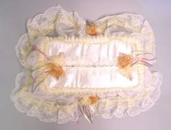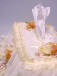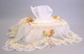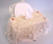 今回は洋風のティッシュカバーをご紹介します。お花やレース、クマさんの天使がついたのまでいろいろありますよ。応接間・リビング・寝室・クルマ・お手洗いなどにピッタリです。ティッシュボックスもオシャレさせてあげませんか? これらの商品は百貨店などでは1500〜2000円くらいで販売されています。蘇州屋では驚きの価格で皆さんにご提供致しまーす。 (^_^)v 尚、ティッシュカバーは厚め(高さ6.5cm)のティッシュボックス用に作られていますが、薄め(5cm)でも使用可能です。 |