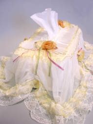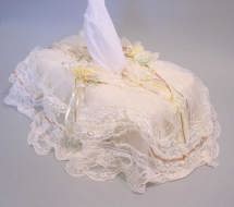 | フタ式のカバーです。リボンや小さいお花がキュートです。 落ち着いた色で、レースも素敵です。 リビング・化粧台・寝室などにいいですね。 品番 : TSC−006 価格 : 売りつくし 80%OFF |