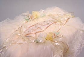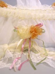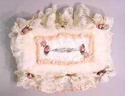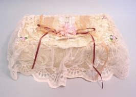 | とってもかわいい、小さな花がアクセント。レースも素敵です。 結婚式で花嫁控え室にもってこいのカバーですね。 もちろん寝室・応接間にもいいですよ。 品番 : TSC−004 価格 : 売りつくし 80%OFF |