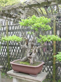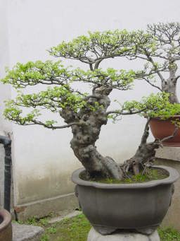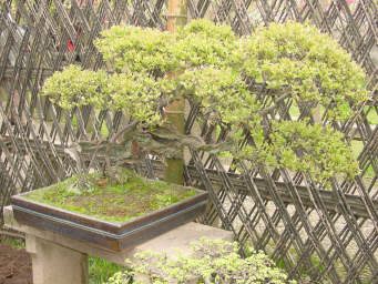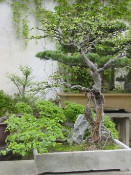 ちょっと見にくいですが、手前の盆栽はおもしろいかたちです。 | |