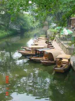虎丘に入場してすぐの場所での一枚。いい味出してるでしょ!? この船に乗って遊覧も出来るみたいです。あと馬車もあったかな。 |