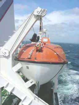 救命ボートは小型潜水艦みたいなのが備え付けられていました。なんか乗ってみたいような乗りたくないような...。 | |