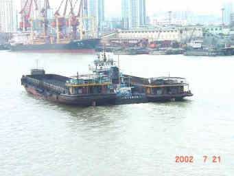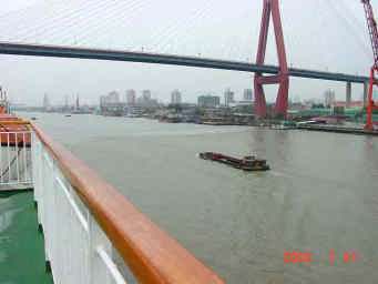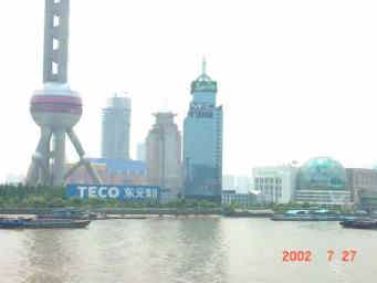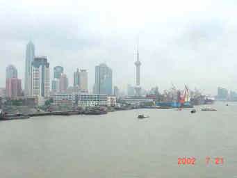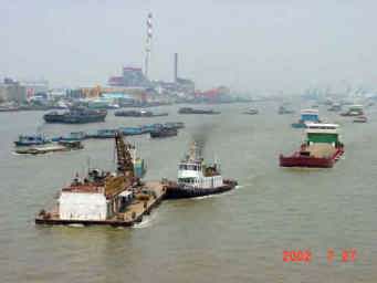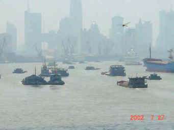 大きい船も、小さい船も大都会上海を目指して進む...。豊かな未来にむかって躍動する上海はもうとまらない。