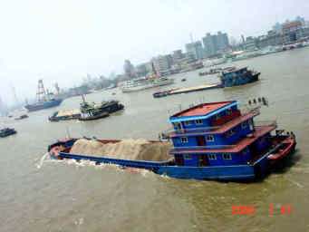 上の写真もそうだが、これらの船は積載量を無視し、積めるだけ積んでいるのか、すこぶる遅い船足で航行していた。中国は現代でも柱だけセメントを使い、壁はレンガ造りが多い。(近代的なビルでも同じ。耐震性能は大丈夫なのかなー???)
