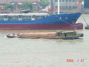 の船で、物資を満載した二の船を曳航している船も多く見かけた。ビルや高速道路の建設のため、土砂はいくらあっても足りないのだろう。