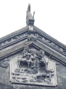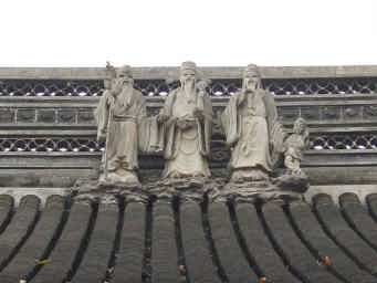 蘇州に来たら庭園のほかに、建物の壁や、屋根にも目を向けて欲しい。 ここで見つけたのは仙人でしょうか?満面の笑顔のおじいさんが二人いらっしゃいました。 |
