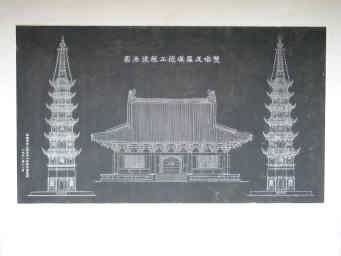 双塔及び羅漢院正殿復元図。