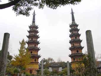 その名のとおり、ツインタワーで、982年(宋代)に建立。8角7層、高さは33.7mある。