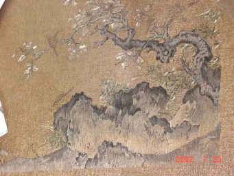 これは山水画に見えますが、これも刺繍されたもの。この作品は大変大きな作品で、写っている所はごく一部分。この撮影した部分だけで3ヶ月かかったとのこと。作品によっては一年または、それ以上かかるものも珍しくないとのこと。我々アジアの人間は手先が器用だけどそれにしても一年とはスゴイ!!! | |
