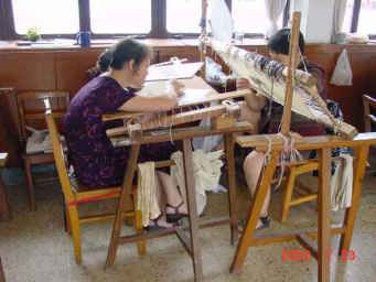 最後にこれは作製風景。 やはりすべて女性で、20代後半から40代半ばの方が作製していました。細かい作業は眼が命だから、年配の方はおられませんでした。また、光源も窓から差し込む太陽光を頼りに仕事をしておられました。今回、何人かの方とお話をさせていただきましたが、この仕事をして17年とか20年とか言っておられました。大変気さくな方ばかりで、みんな笑顔でいろいろと教えてくださいました。謝謝! |