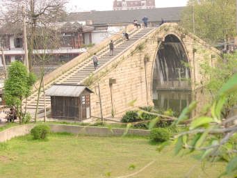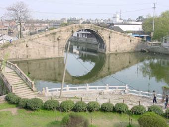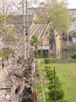 平和な観光にもどりましょう。 これが呉門橋。 (花が邪魔でよく見えないって?下を見てね!) |