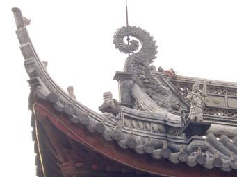 魚米之郷とうたわれるだけあって、屋根瓦の装飾もかなり手が込んでいる。 |