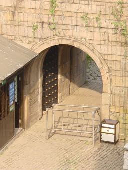 上の写真の反対側はこの門。 広いので多くの兵士をここに待機させ、門が突破されてもここで防ぐ事が出来る。二重・三重の防御態勢だ。 |