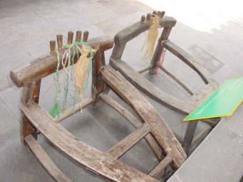 子供用のイス。 昔、むかしの物と思うでしょ? でも、今でも使われているんだな、これが...。 なんで、そんなこと判るのかって? 用直で実際使ってるところを見たから...。 中国の人は、物持ちがいいね。 |