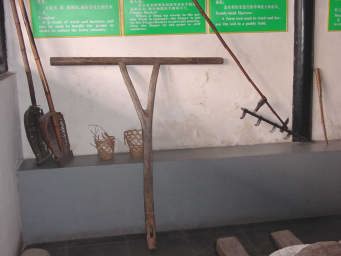 耕作の道具。 野球で使うトンボみたいなのは、田んぼをならすのに使う。原理はトンボと一緒。 |