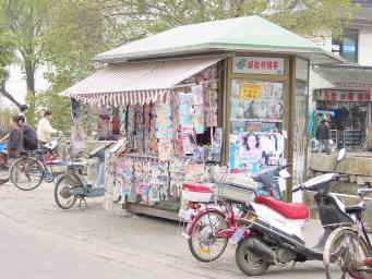 町中の雑誌販売所。 所狭しと各種雑誌が売られている。 |