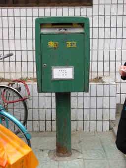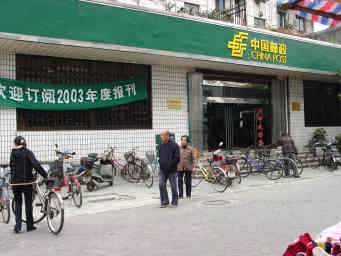 郵便局。 日本の郵便局を表すカラーは朱色だけど中国は深緑。 |