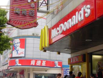 こちらはファーストフードの横綱−マクドとケンタッキー。 若者を中心にいつもお客さんがいっぱいだ。 接客もマニュアルのおかげで他の飲食店よりはいいとおもう。 でもスマイルは日本ほどないかなー...。 ちなみにマクドのソフトクリームは安くて(2元−30円くらい)おいしい。オススメです。 |