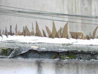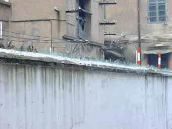 この壁、よく見るとガラスが付けられています。 泥棒よけです。実際の効果は薄いだろうけど、心理的効果はあると思う。 |