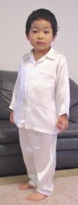 アトピー、敏感肌、乾燥肌の男の子に最適なシルクパジャマはないだろうか? と考えて2006年11月6日に子ども用シルクパジャマをリリースした蘇州屋ですが、 さらに肌にやさしいものをと考えて、生地を染める染料も一切不使用の シルクパジャマを完成させました♪ 名付けて、天国で作られた♪ 天使仕様のスヤスヤシルクパジャマ カイコさんバージョン・男の子用です。 一人でも多くの子供たちが毎晩グッスリ眠れて、いい夢を見てほしい。 そんな願いを込めて、カイコさんバージョン・男の子用、遂に新登場です♪ 仕様変更をまたまた実施!、更に寝心地良くなりました。 (おしりにゆとりを持たせ、わきの下の強度もアップしました) |