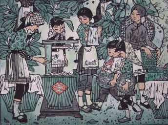 | 彼の版画は中国では有名。下記の経歴でもわかるように数々の賞を受賞している。働く人々や庶民の生活を生き生きと描いている。 |