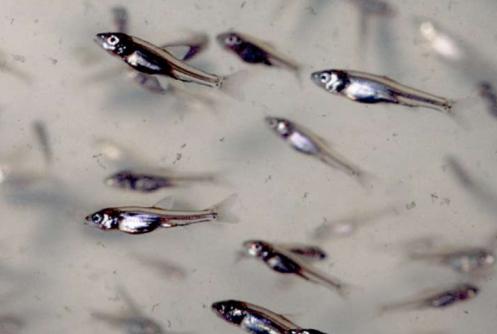ふ化してから15日くらい(長さ約1cm)まではワムシやミジンコなど天然のプランクトンを与えて大きくします。その後、人工飼料(金魚のえさのようなもの)を与えながら2ヶ月くらい飼育すると長さ2cmのホンモロコになります。この間は、毎日、餌を与えます。 |