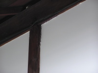 上部漆喰の一部をとり、柱と桁にも制震ダンパーを取り付ける。