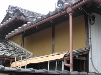 この住宅は築80年の伝統工法による建物です。基礎はコンクリートではなく玉石である。筋交い、耐震パネルは強すぎてバランスが崩れるので、制震ダンパーで補強をしました。