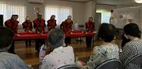 余興は草津野路女性の会による銭太鼓の演技が行われました。お茶とお菓子を頂きながら手打ちしながら
