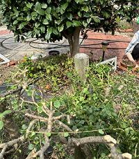 高さを10cm低く剪定をしましたが枝払いの関係で仕上がりが見てくれが悪い。来年には綺麗になるかな。支えの