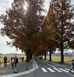 8号線-303で行きました。帰りは旧161号線で帰りましたが車がほとんど無く快適でした。メタセコイアは赤く染まり