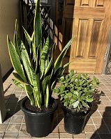 12/6 現在の虎の尾の植木鉢が小さいので一回り大きな植木鉢に植え替えました。隣は一枚の葉から大きくなった成金草です。