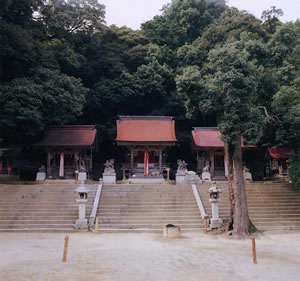 海津天神社の祭神は菅原道真で、建久2年(1191)の勧請と伝えられています。その正面には三社が奉られ、中央が天神社、向かって右に大鍬社、左に小野社と鎮座しています。この神社には、平安末期の紙本墨書法華経十巻(重要文化財)、板絵著色絵馬(県指定文化財)など多くの文化財が残されています。