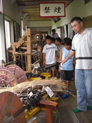 岡さんに案内いただき、昔の農具や天秤棒など、たくさんの資料を見せていただきました。