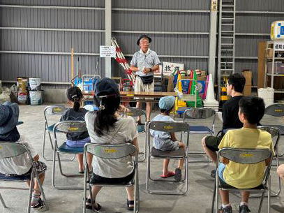 ぼてじゃこトラストの田中さんにご協力いただき、子どもたちに県内の小川に住む生きものたちのお話をしていただきました。