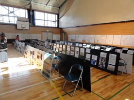 子どもたちの田んぼに関する夏休み自由研究の発表も、体育館の壁一面に張り出されていました。かなりレベルが高く、びっくりしました。