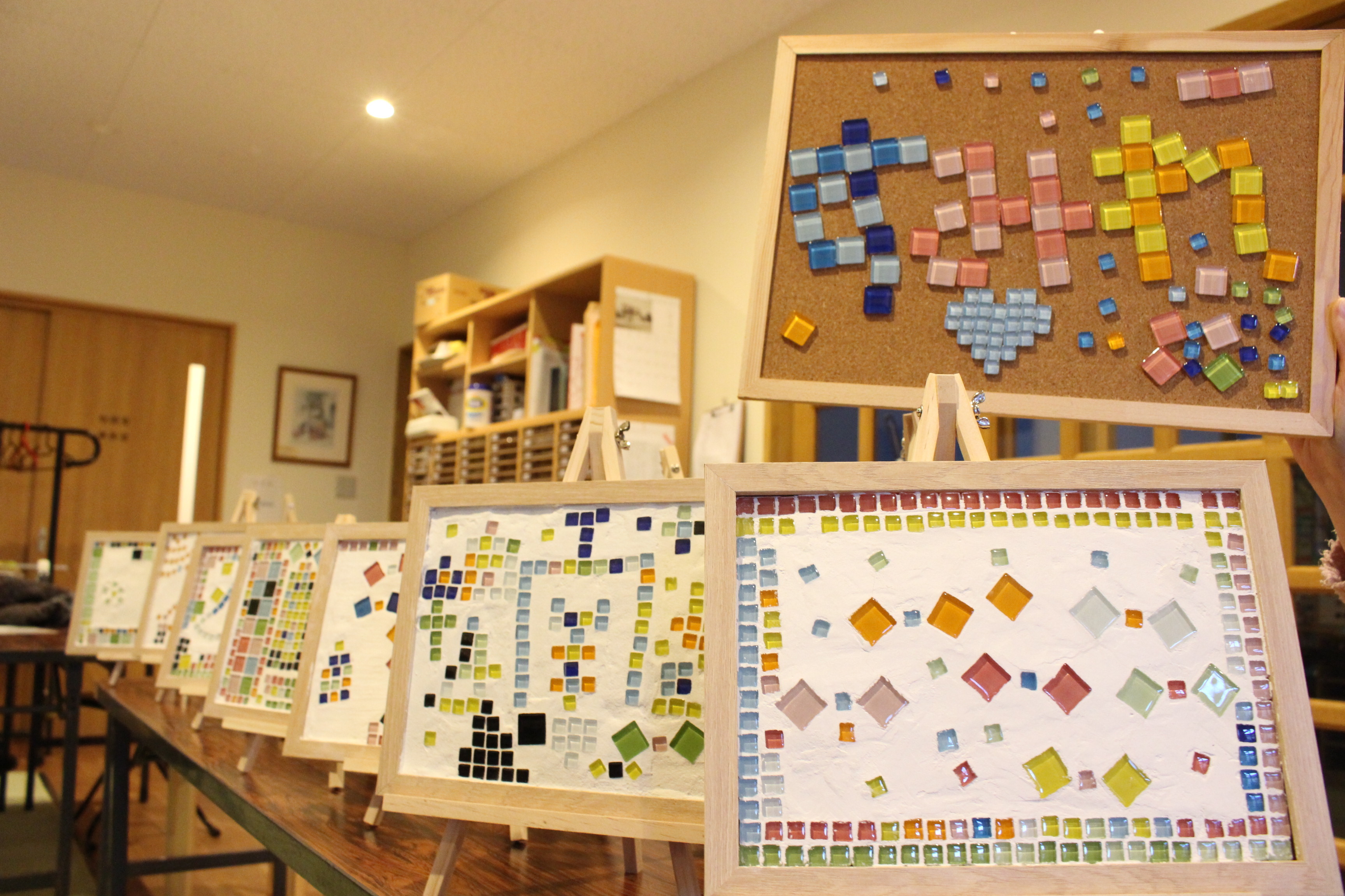 絵を考えた後はタイルを一つずつ丁寧に貼っていきました。
