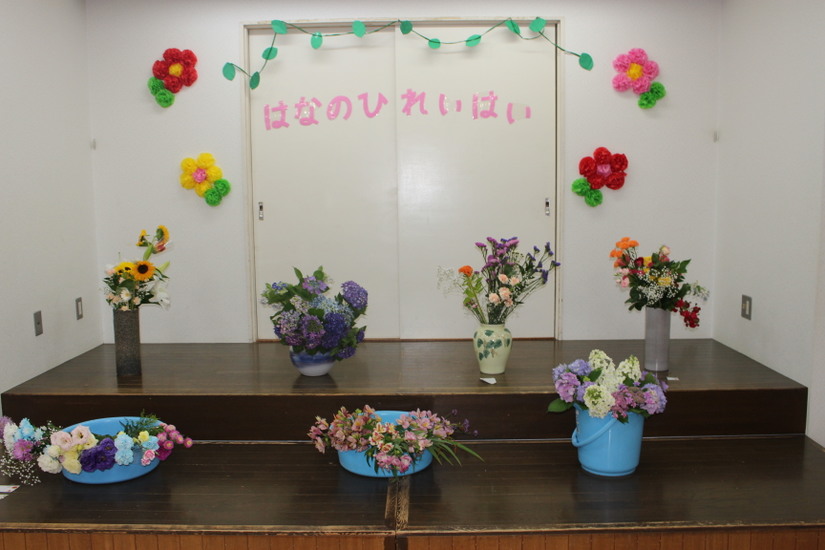 今日は、「花の日礼拝」でした。登園の時、みんなにこにこしてお花を持って来てくれました。ホールの舞台へ持ってきたお花を大事において、「このお花は、おばあちゃんのお家に咲いていたんだよ。」「このお花は、自分で選んだよ!〇〇っていう名前だよ!」などと教えてくれました。ホールの舞台は、きれいなお花でいっぱいになり、とても素敵でした。お花を見ながらお礼拝をしました。そして、いろいろなお花の名前を先生から教えてもらいました。子どもたちも、知っているお花の時は自信満々に言っていましたよ☺お花は、花束にして、日頃お世話になっている方々へお届けしました。皆さんに喜んでいただきうれしい1日となりました。お花をご用意くださったおうちのみなさん、本当にありがとうございました。
