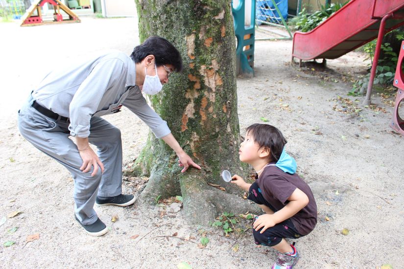 「見たことのない虫だなぁ」「これは、毒毛虫のぬけがらだよ」・・・・ゆったりとした、あたたかい時が過ぎていきました。